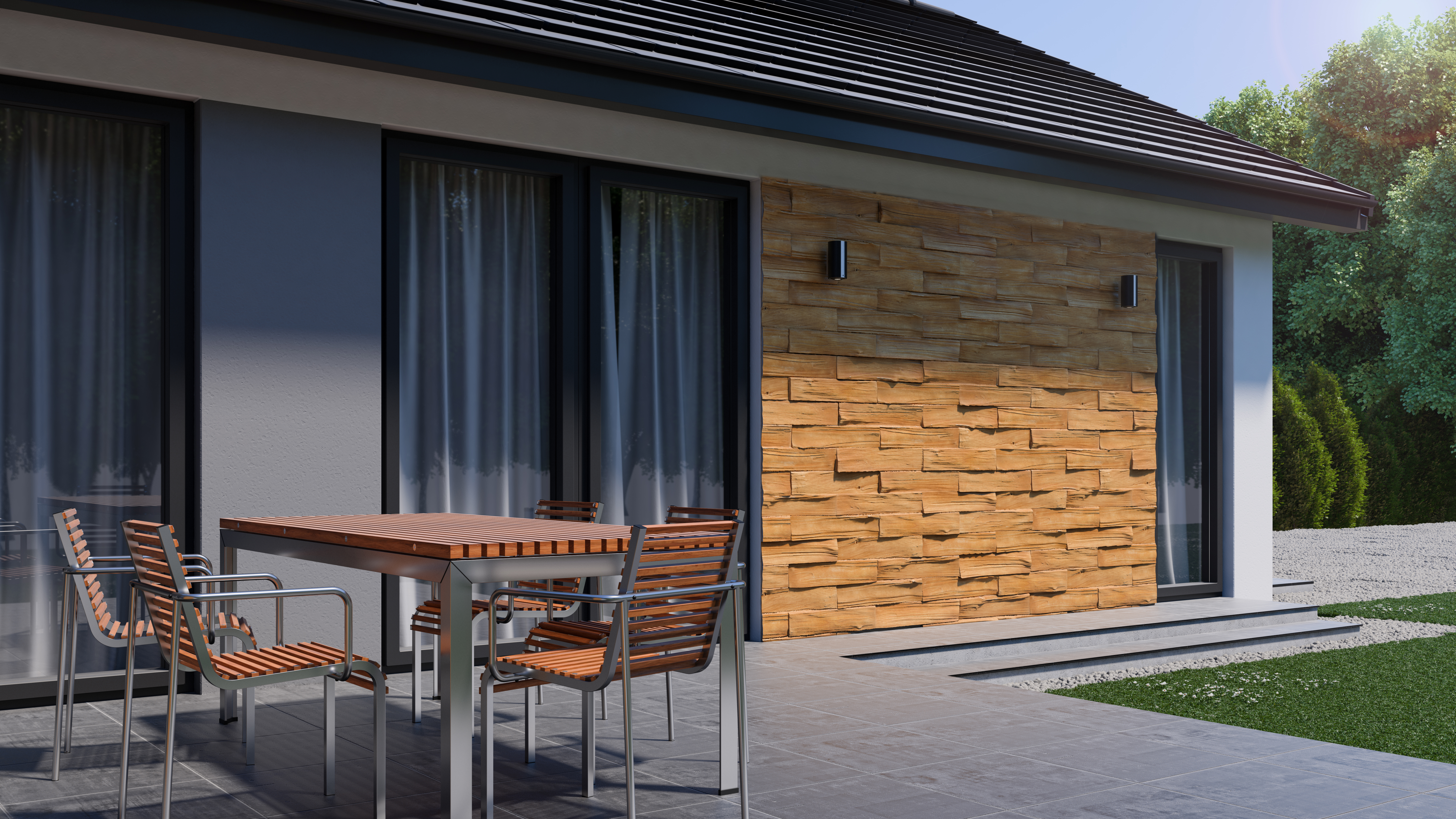 Káva ráno, obed vonku, večer s rodinou, návšteva cez víkend. A väčšinou sa to celé nedeje pred domom, ale na terase, pod prístreškom alebo v zadnej časti domu. Práve tam človek trávi najviac času. A práve tam začne byť vidieť, či je dom dotiahnutý len „spredu“, alebo aj tam, kde sa naozaj žije.